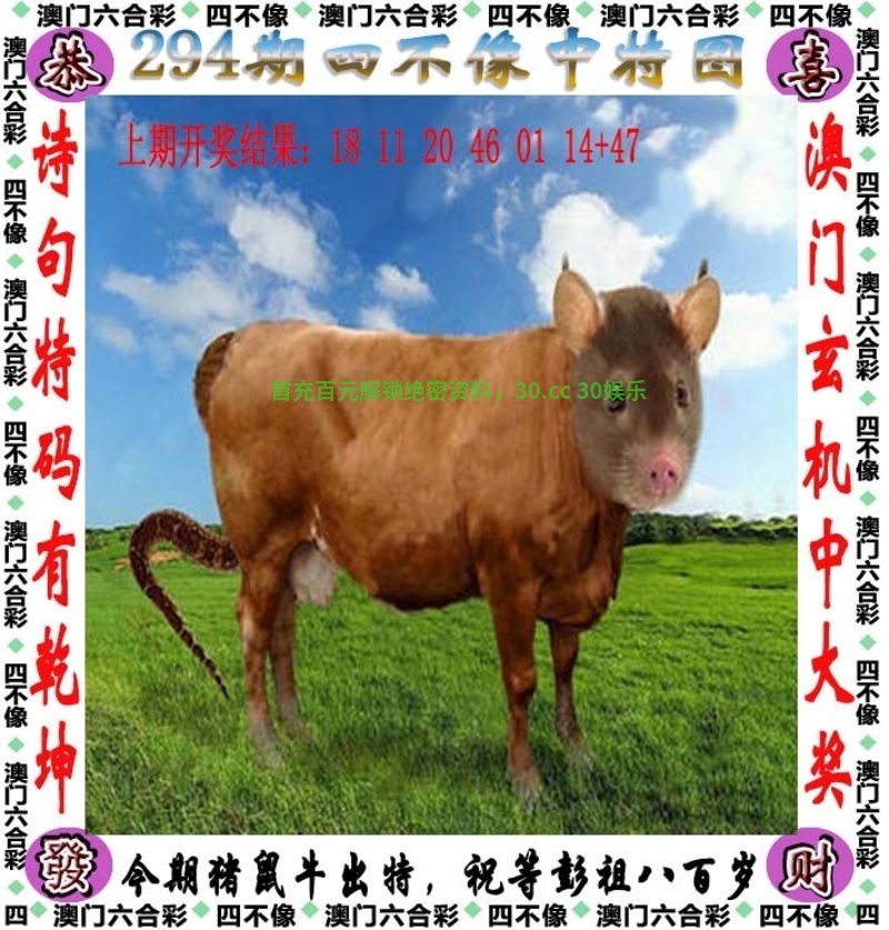 294期:今期猪鼠牛出特,祝等彭祖八百岁开鼠18准 ①图解特肖猪鼠牛蛇羊 |